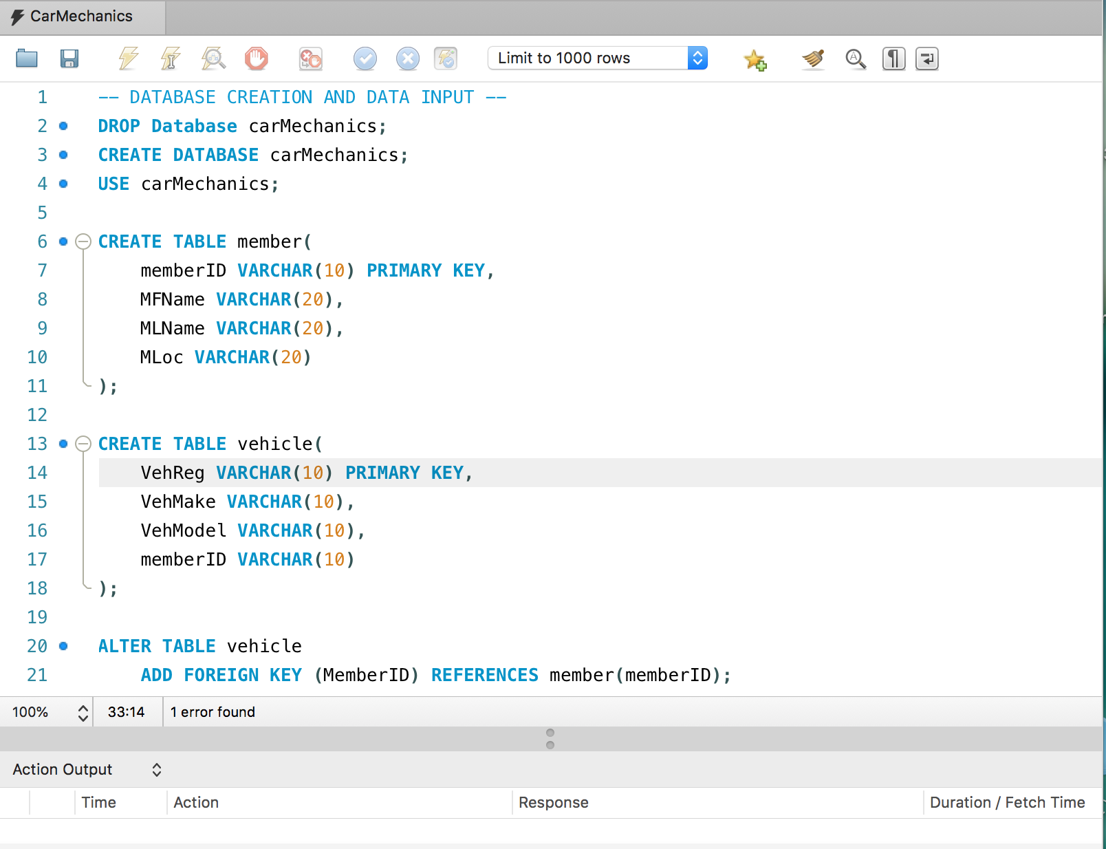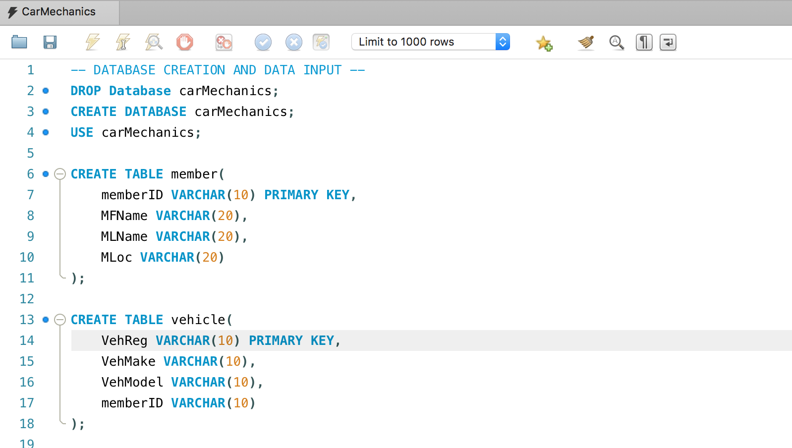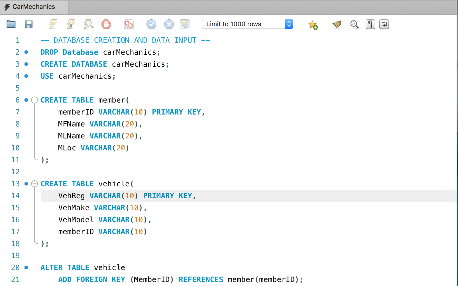 The aim of the project was to build a MySQL database to model a Car Breakdown Repairs Company. Members register with the company and logged onto a database. Some of the members have multiple cars registered.